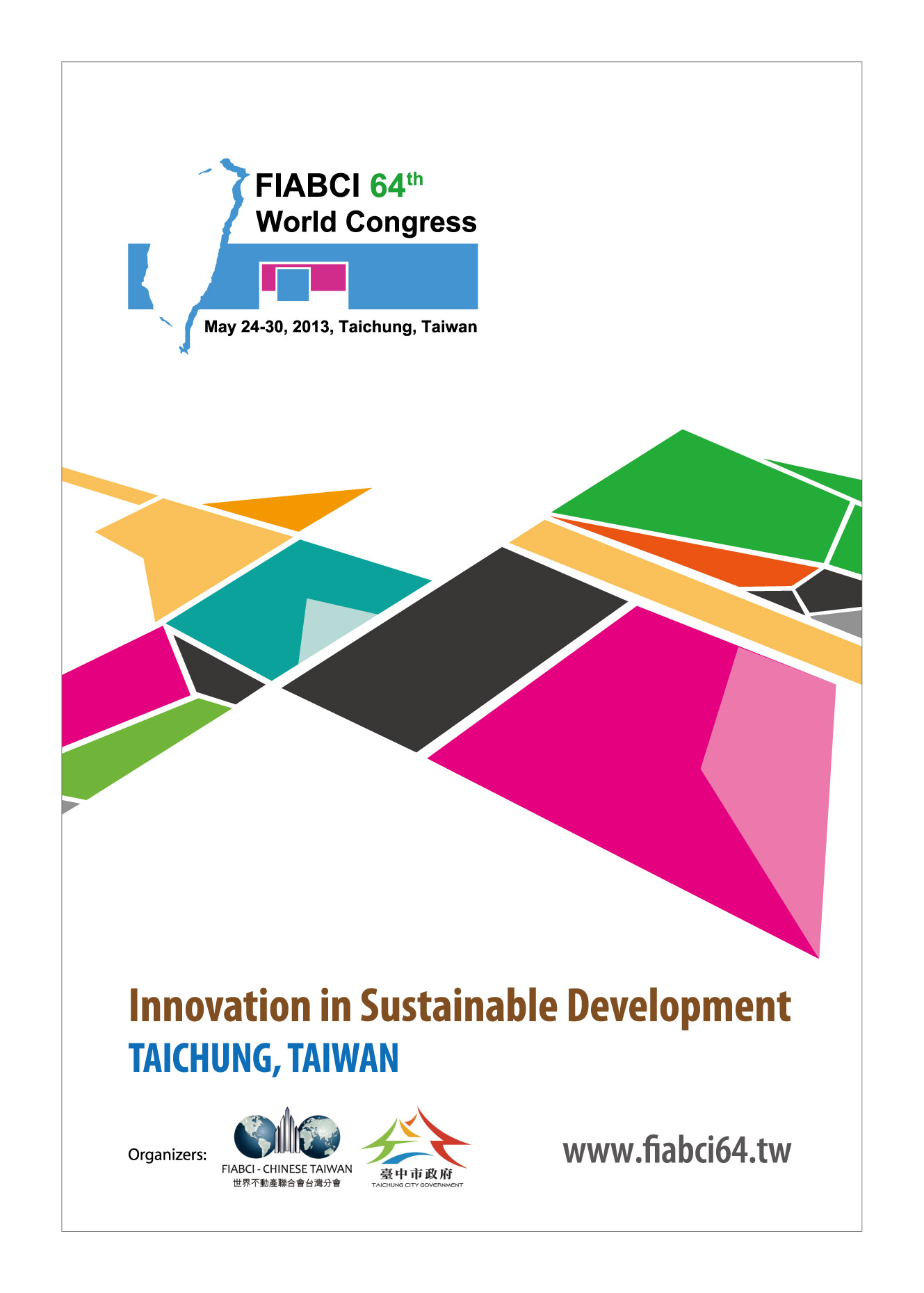 E é neste contexto que a 64ª edição do Congresso Mundial, organizada pela Fiabci China Taiwan, trouxe como tema “Inovação em Desenvolvimento Sustentável”. O 64º Congresso Mundial da FIABCI ocorreu nos dias 24 a 29 de maio de 2013, em Taiwan, na cidade de Taichung.