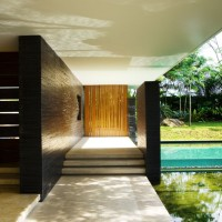 A integração sem cortes dos elementos naturais é fantástica. O pátio aberto, com um belo lago artificial ao centro, não só envolve os residentes na natureza, mas também promove a boa ventilação cruzada em todas as partes da casa. As plantas que cobrem o telhado também ajudam a resfriar o espaço, sendo alimentadas pelas águas das chuvas.