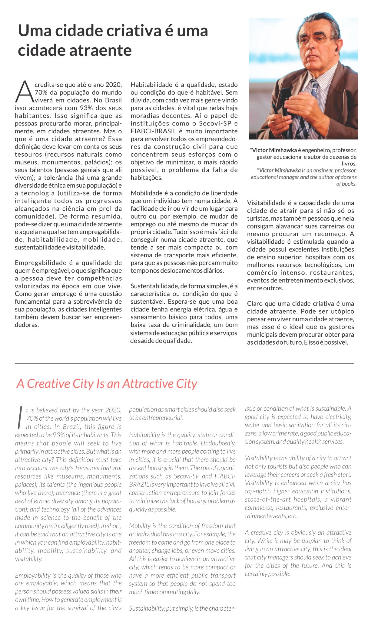Victor Mirshawka, engenheiro, professor e gestor educacional fala sobre como tornar as cidades mais criativas e atraentes.