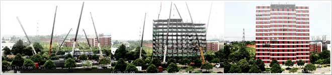 Os moradores de Changsha que não passaram pelo centro da cidade nos últimos dias arriscam-se a ter uma grande surpresa: em apenas 6 dias nasceu ali um novo hotel, de 15 andares.