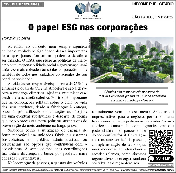 Acreditar no conceito nem sempre significa aplicar o verdadeiro significado dessas importantes letras que, juntas, formam um poderoso desafio a ser trilhado. O ESG, que reúne as políticas de meio-ambiente, responsabilidade social e governança, será cada vez mais cobrado não só das corporações, mas também de todos nós, cidadãos conscientes do seu papel na sociedade.