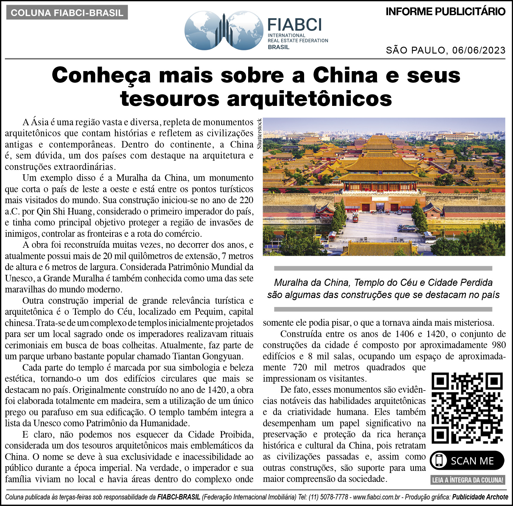 "Conheça mais sobre a China e seus tesouros arquitetônicos " - O Estado de S.Paulo - Cad. Internacional - Pág. A13.