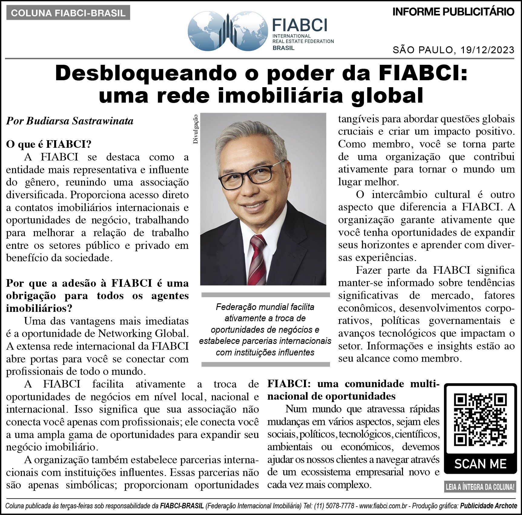 * Budiarsa Sastrawinata é presidente da FIABCI Mundial