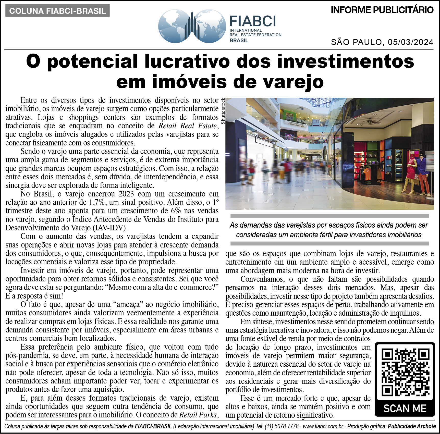 "O potencial lucrativo dos investimentos em imóveis de varejo" - O Estado de S.Paulo - Cad. Metrópole - pág. A16.