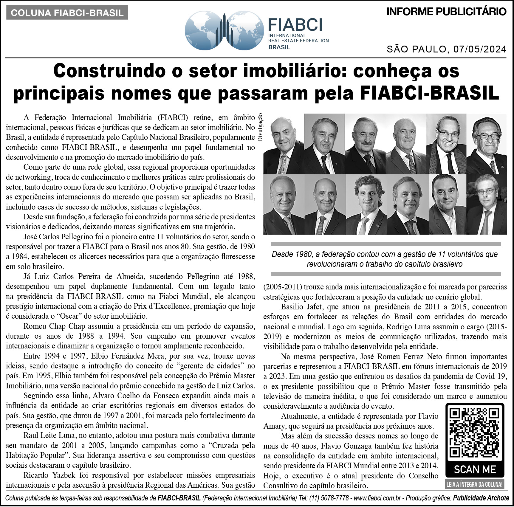 "Construindo o setor imobiliário: conheça os principais nomes que passaram pela FIABCI-BRASIL" - O Estado de S.Paulo - Cad. Negócios - pág. B6.