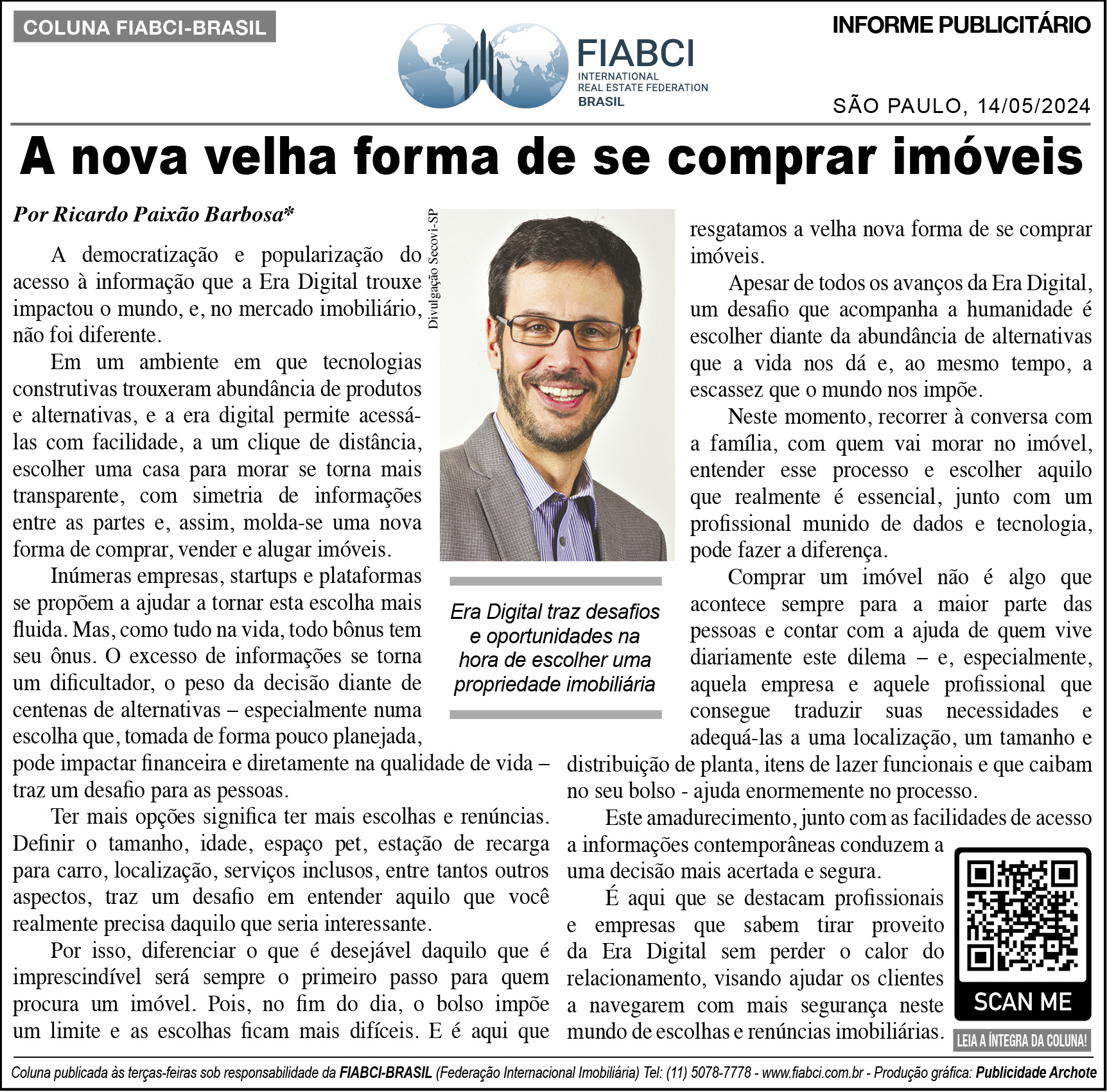 *Ricardo Paixão Barbosa é Diretor Operacional do Secovi-SP e CEO da iConatus