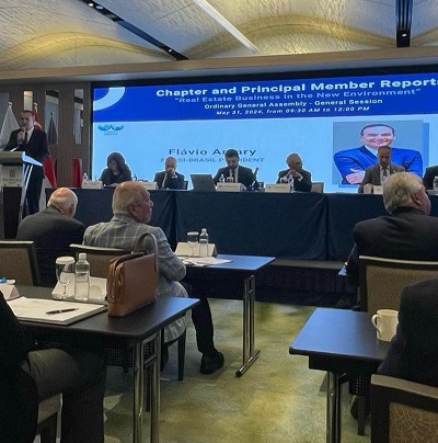 Na ocasião, Flavio Amary, atual presidente da FIABCI-BRASIL, teve a oportunidade de apresentar uma análise sobre o mercado imobiliário brasileiro. Ele compartilhou o palco com representantes de diferentes países.