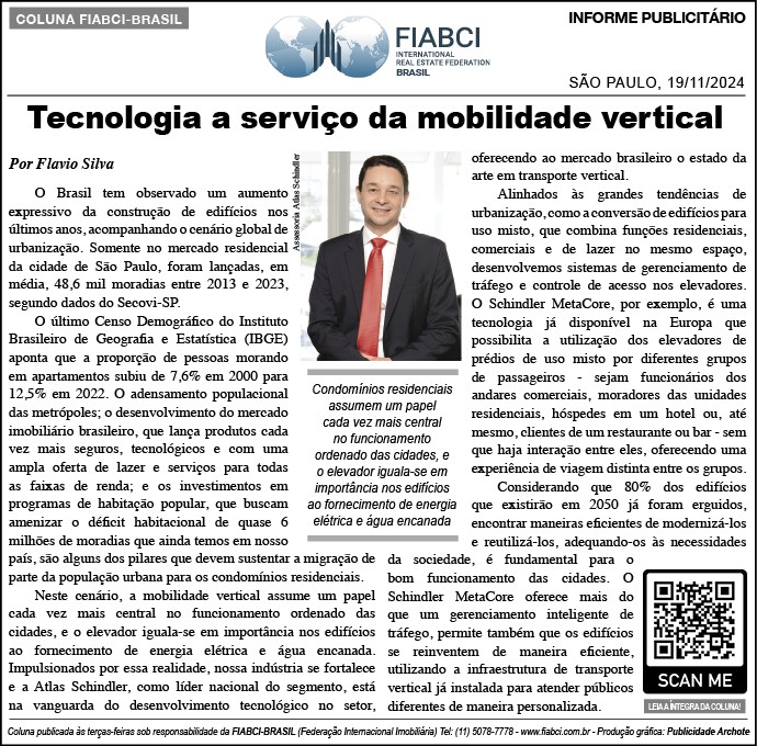 *Flavio Silva é presidente do Grupo Schindler na América Latina