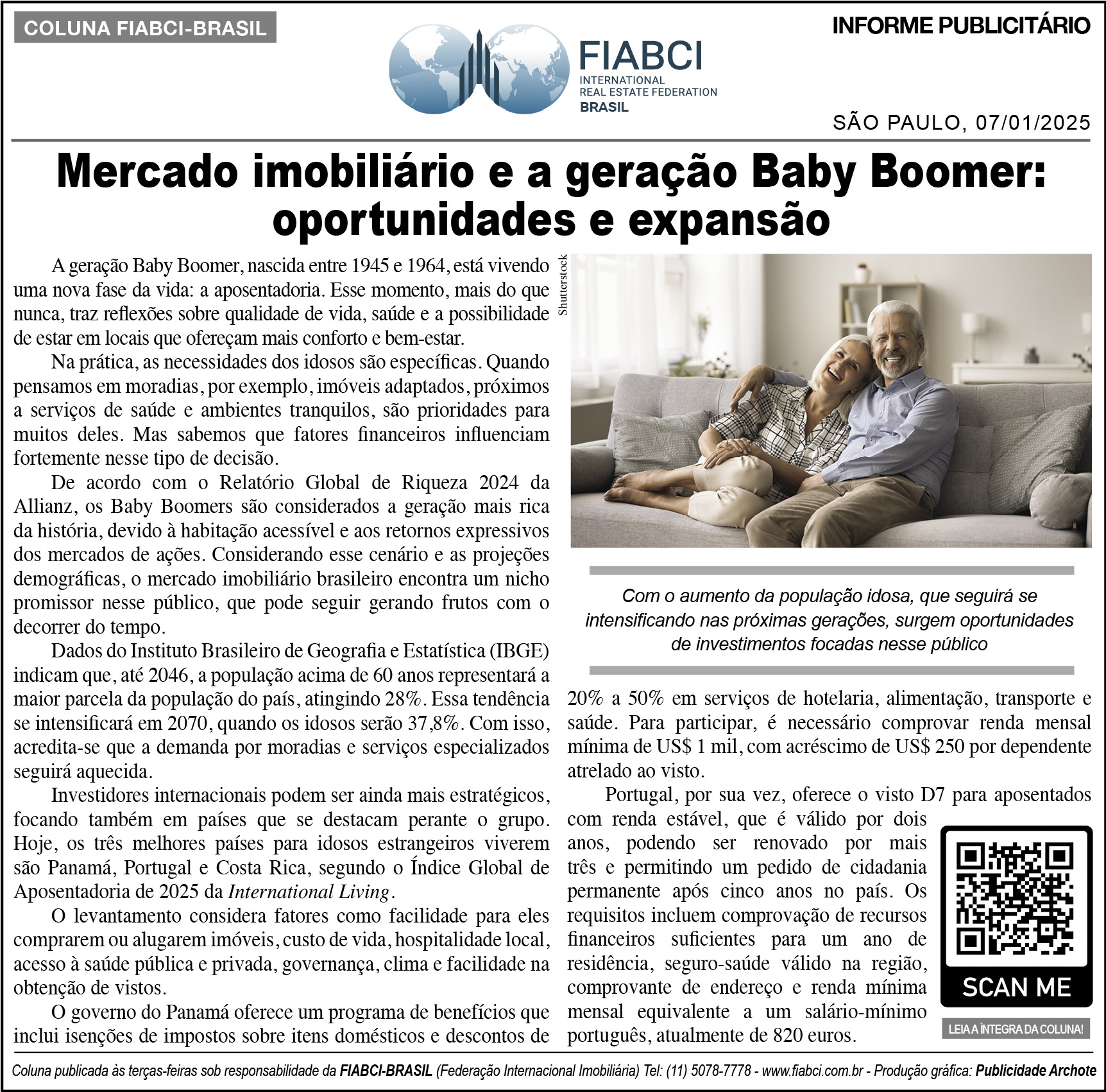 "Mercado imobiliário e a geração Baby Boomer: oportunidades e expansão" - O Estado de S.Paulo - Cad. Negócios - Pág. B8.