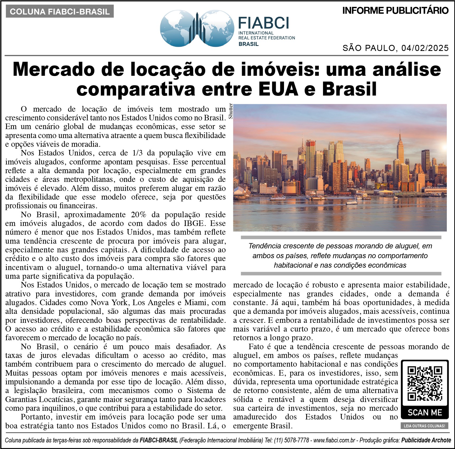 "Mercado de locação de imóveis: uma análise comparativa entre EUA e Brasil" - O Estado de S.Paulo - Cad. Negócios- Pág.B8.