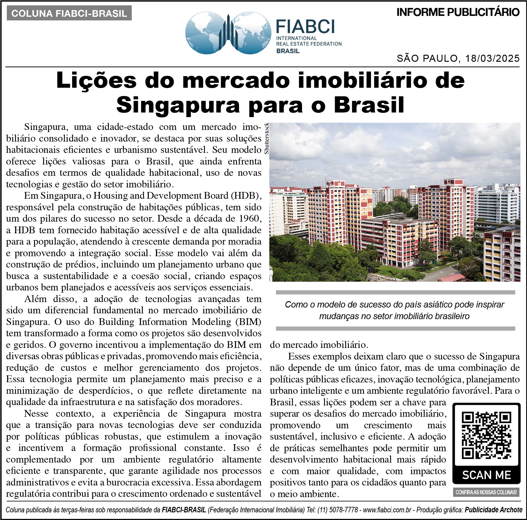 Nesse contexto, a experiência de Singapura mostra que a transição para novas tecnologias deve ser conduzida por políticas públicas robustas, que estimulem a inovação e incentivem a formação profissional constante. Isso é complementado por um ambiente regulatório altamente eficiente e transparente, que garante agilidade nos processos administrativos e evita a burocracia excessiva. Essa abordagem regulatória contribui para o crescimento ordenado e sustentável do mercado imobiliário.
