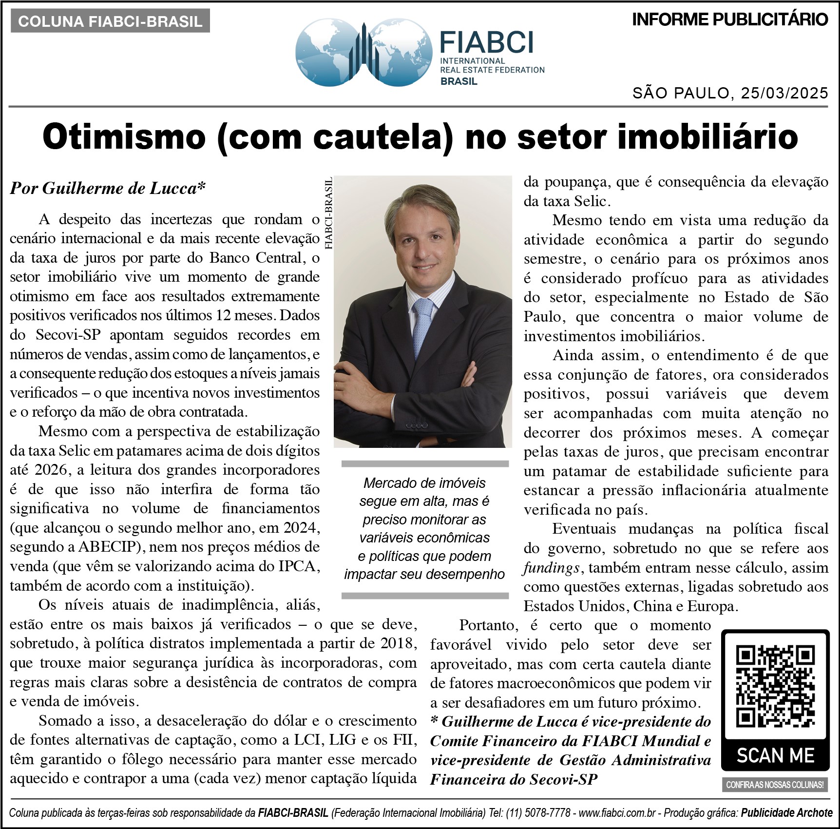 * Guilherme de Lucca é vice-presidente do Comite Financeiro da Fiabci Mundial e vice-presidente de Gestão Administrativa Financeira do Secovi-SP
