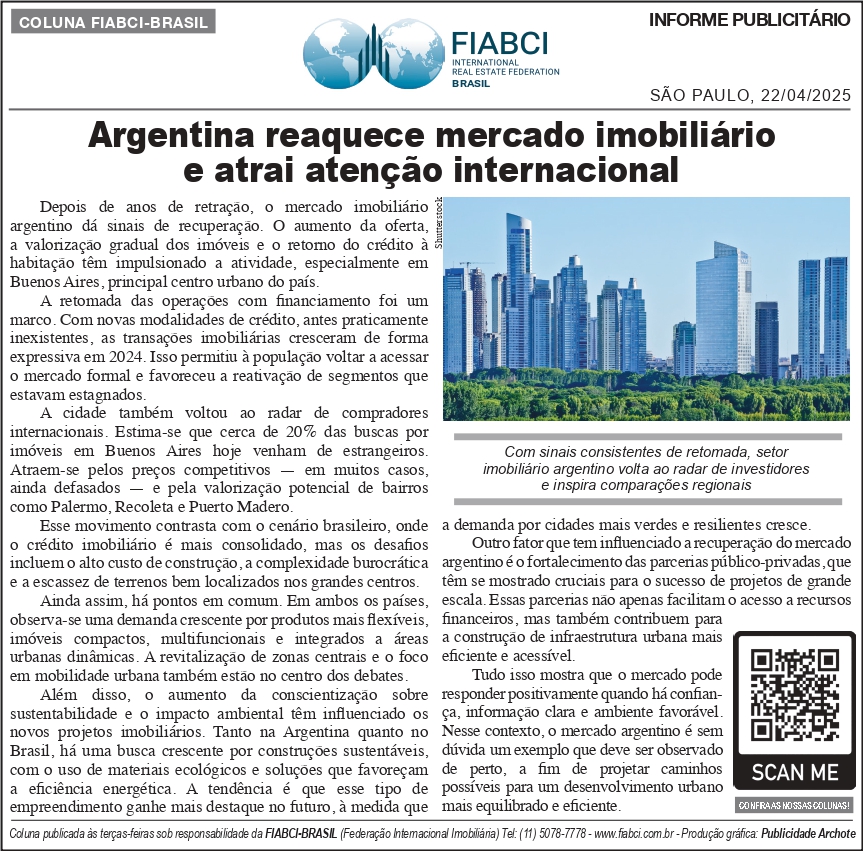 Tudo isso mostra que o mercado pode responder positivamente quando há confiança, informação clara e ambiente favorável. Nesse contexto, o mercado argentino é sem dúvida um exemplo que deve ser observado de perto, a fim de projetar caminhos possíveis para um desenvolvimento urbano mais equilibrado e eficiente.