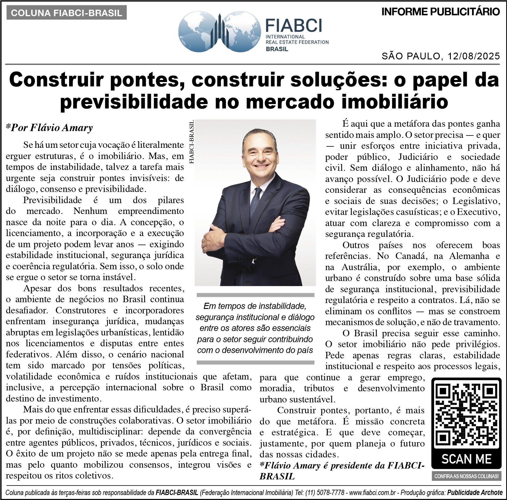 "Construir pontes, construir soluções: o papel da previsibilidade no mercado imobiliário" - O Estado de S.Paulo - Cad. Economia & Negócios - Pág.B1.
