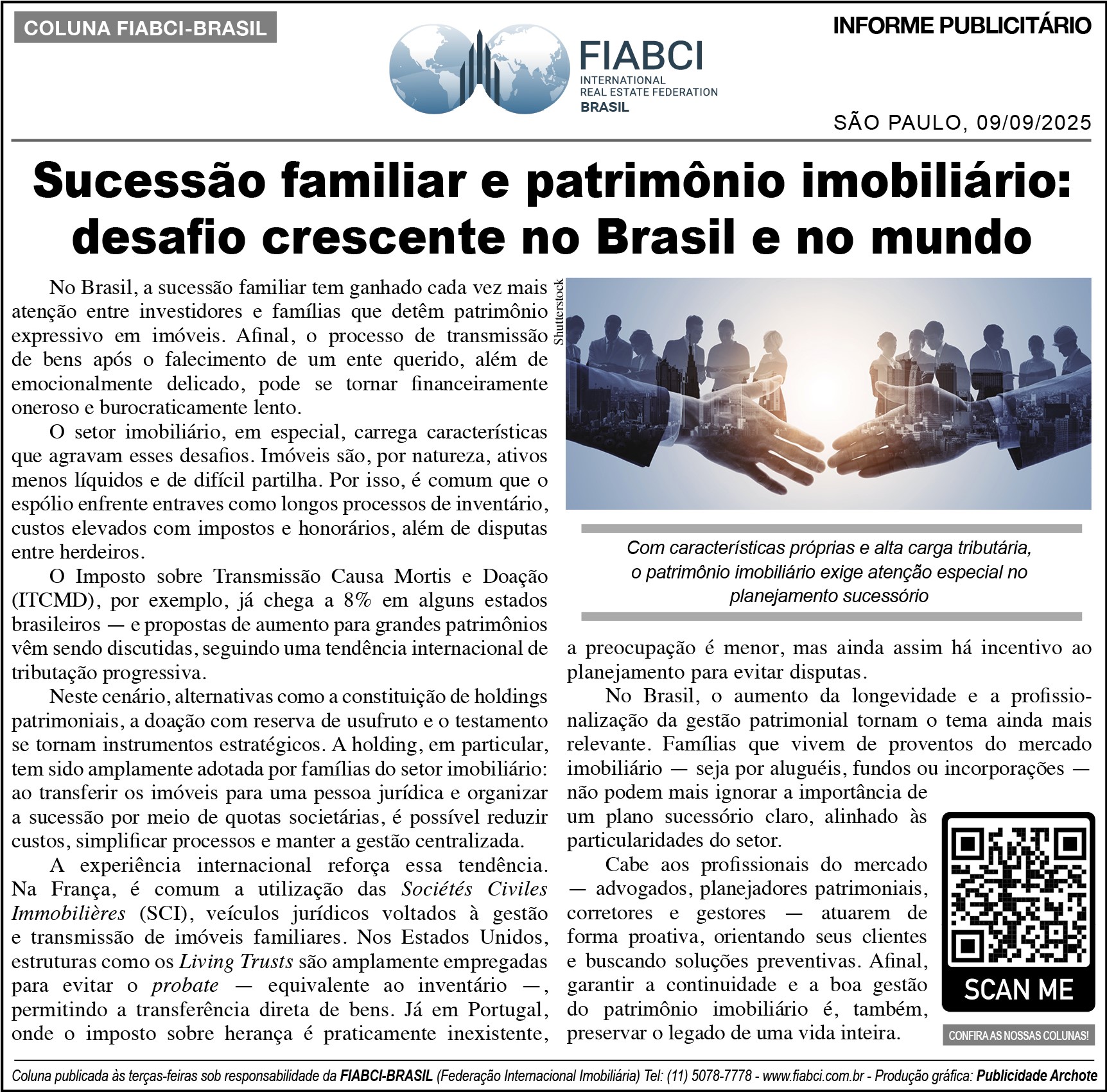 "Sucessão familiar e patrimônio imobiliário: desafio crescente no Brasil e no mundo" - O Estado de S.Paulo - Cad.Economia & Negócios - Pág.B8.