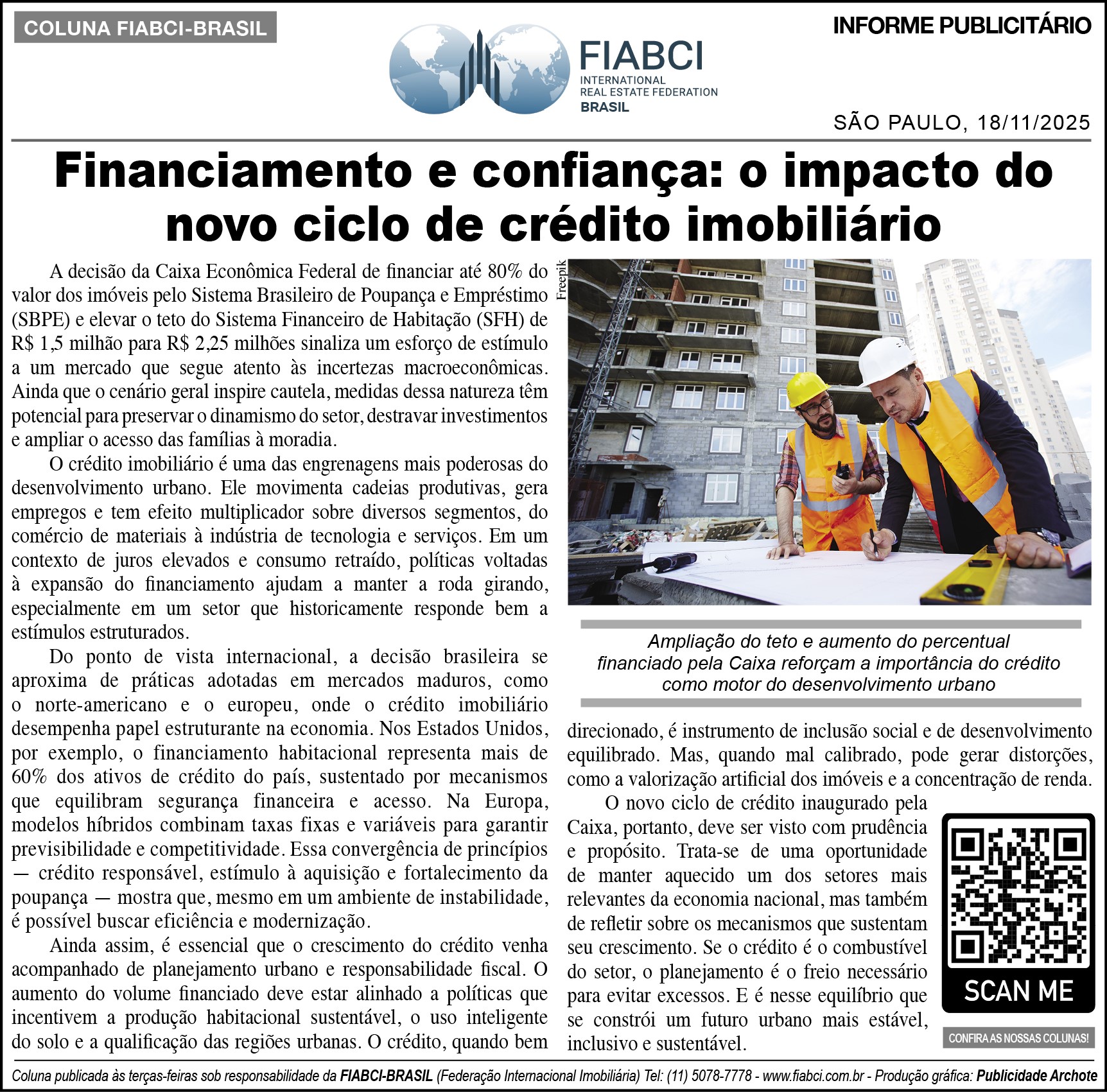 O novo ciclo de crédito inaugurado pela Caixa, portanto, deve ser visto com prudência e propósito. Trata-se de uma oportunidade de manter aquecido um dos setores mais relevantes da economia nacional, mas também de refletir sobre os mecanismos que sustentam seu crescimento. Se o crédito é o combustível do setor, o planejamento é o freio necessário para evitar excessos. E é nesse equilíbrio que se constrói um futuro urbano mais estável, inclusivo e sustentável.