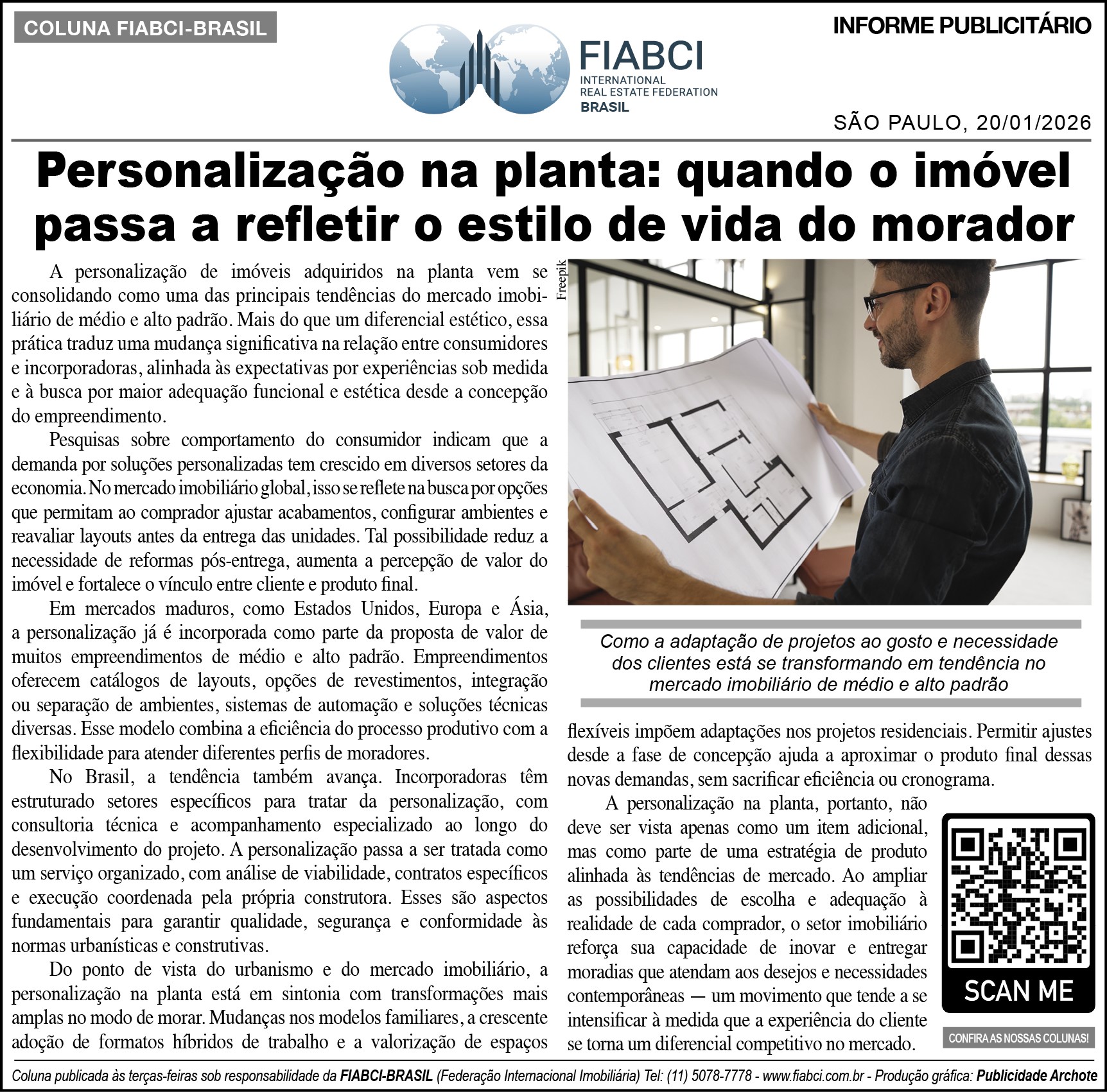 "Personalização na planta: quando o imóvel passa a refletir o estilo de vida do morador" - O Estado de S.Paulo - Cad. Negócios - Pág. B10.