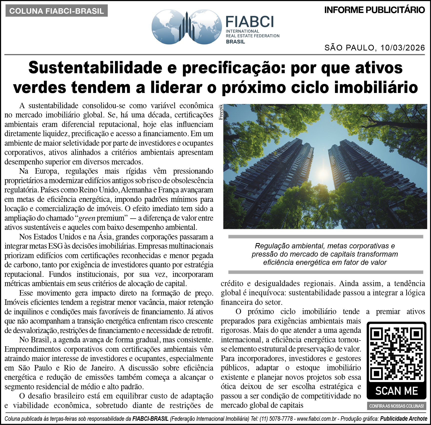 "Sustentabilidade e precificação: por que ativos verdes tendem a liderar o próximo ciclo imobiliário" - O Estado de S.Paulo - Cad. Negócios - Pág. B10.