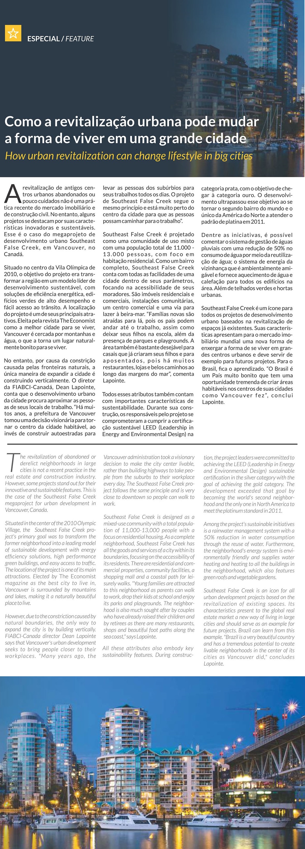 Conheça o projeto de revitalização urbana realizado em Southeast False Creek, no Canadá, misturando inovação e sustentabilidade.