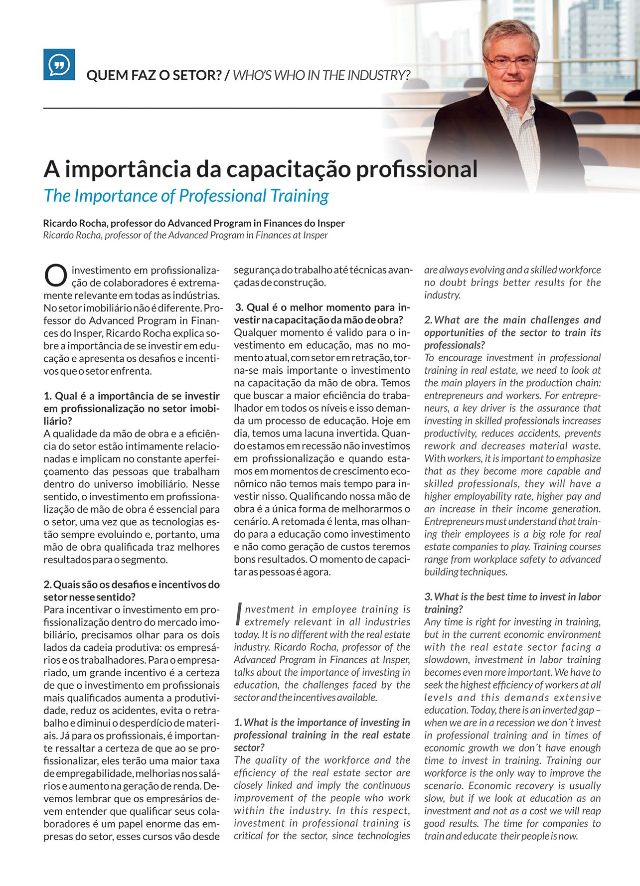 O professor do Advanced Program in Finances do Insper, Ricardo Rocha, explica sobre a importância de se investir em educação e apresenta os desafios que o setor imobiliário enfrenta.