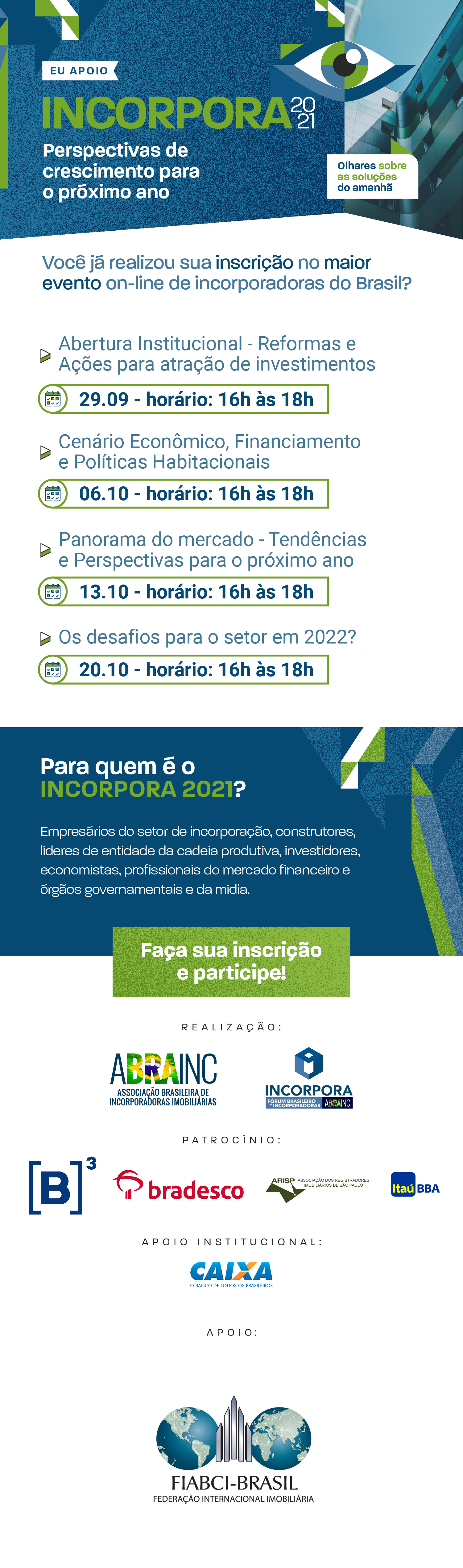 A Fiabci - Federação Internacional Imobiliária - congrega, em âmbito internacional, pessoas físicas e jurídicas que se dedicam ao setor imobiliário. Trata-se da maior entidade mundial do setor imobiliário e reúne profissionais em mais de 65 países.