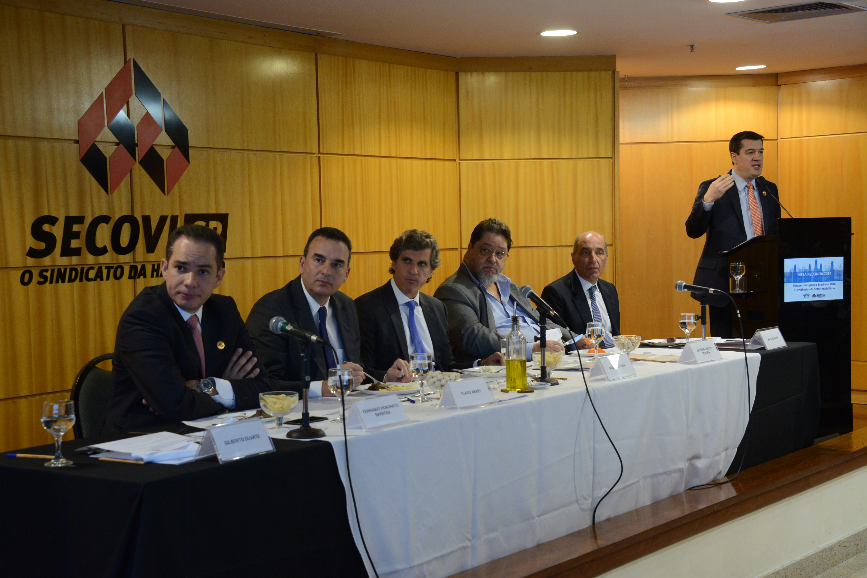 Além das participações de Rodrigo Luna, presidente da FIABCI-Brasil, e de Flavio Amary, presidente do Secovi-SP, foram três palestrantes que participaram do evento: Gilberto Duarte de Abreu Filho, presidente da Associação Brasileira das Entidades de Crédito Imobiliário e Poupança (Abecip), Fernando Honorato Barbosa, economista-chefe e diretor do Departamento de Pesquisas e Estudos Econômicos do Banco Bradesco, e Antonio Carlos Pereira, diretor e editor responsável de Opinião do jornal O Estado de S.Paulo.