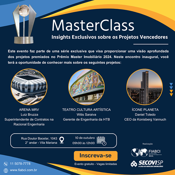 A primeira MasterClass não apenas trouxe uma visão aprofundada desses projetos vencedores, mas também promoveu a troca de experiências e a expansão de conhecimentos, que é tão essencial para a evolução do setor imobiliário.