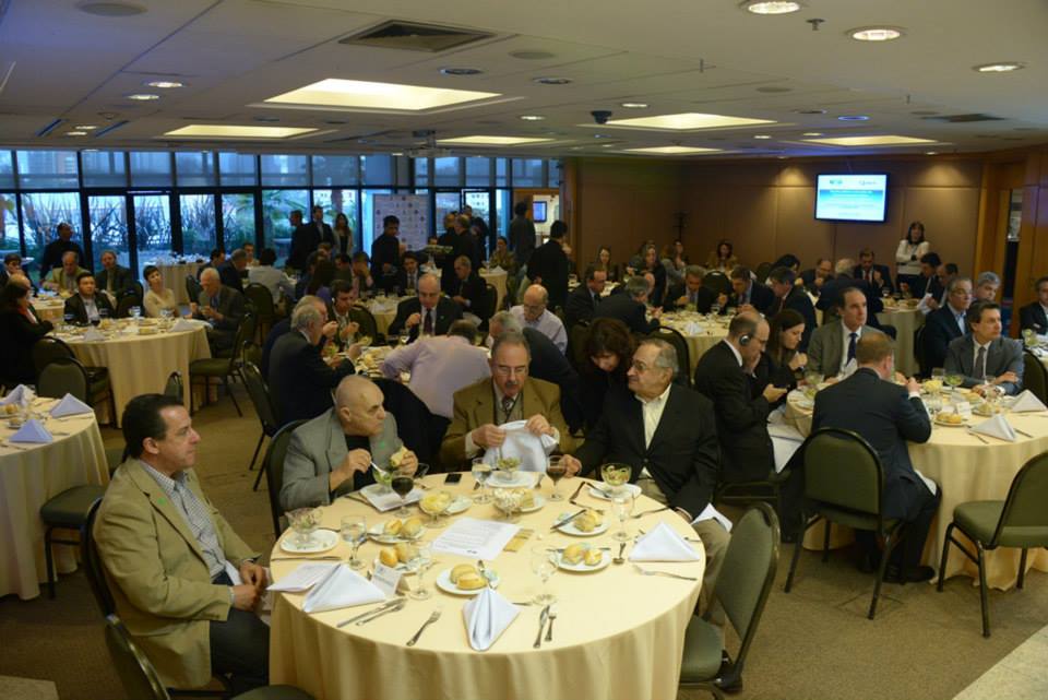 O seleto público com profissionais de destaque foi recebido por Basilio Jafet, presidente da Fiabci/Brasil, Neil Shah, presidente para as Américas da RICS e Claudio Bernardes, presidente do Secovi-SP e reitor da Universidade Secovi-SP.